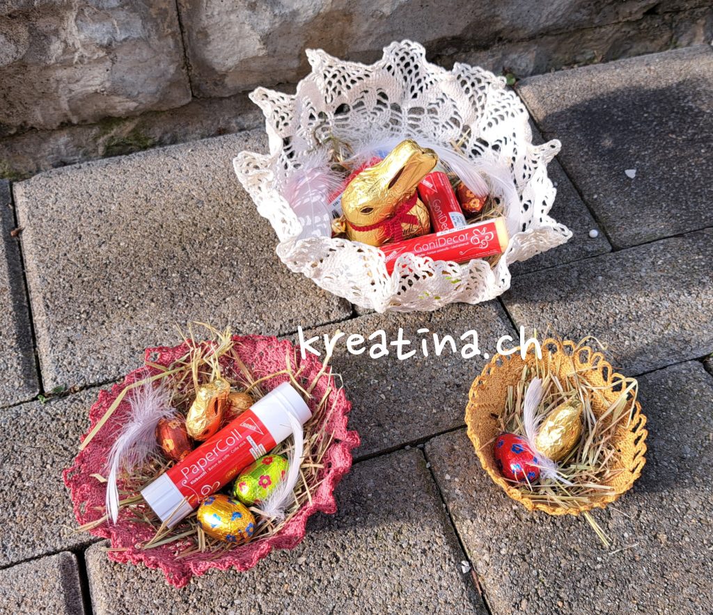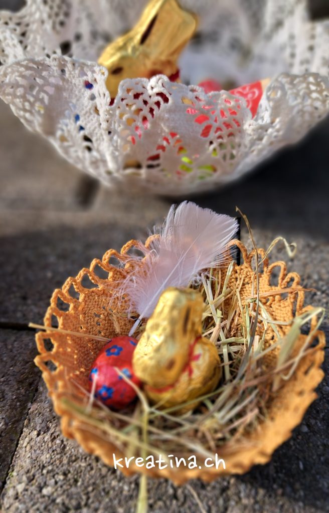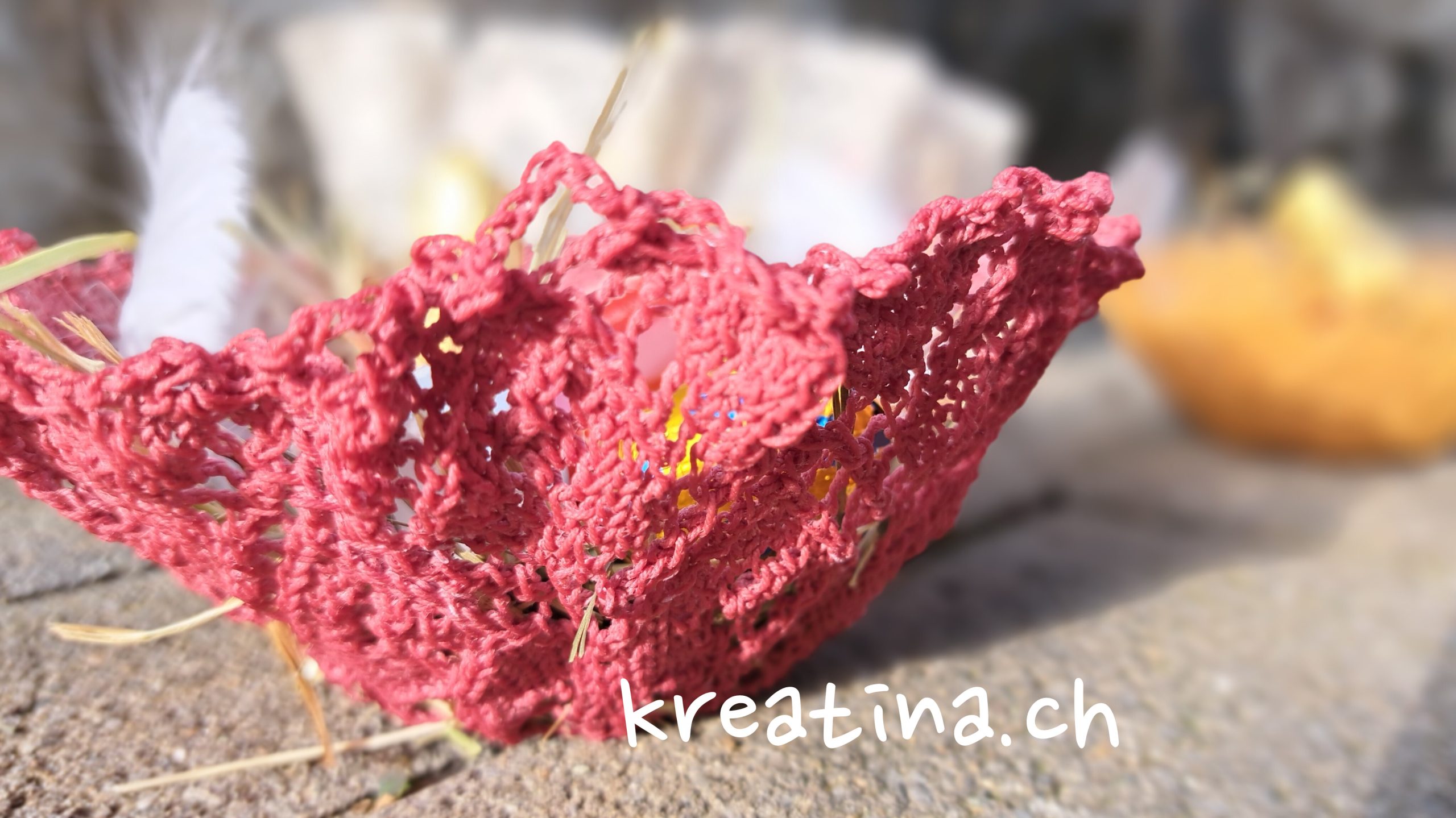 Häkeln liegt ja ebenfalls wieder voll im Trend, und auch Garn lässt sich hervorragend freezen. Deshalb zeige ich euch heute, wie man aus einem gehäkelten Untersetzer ganz einfach ein schönes Osternest zaubern kann.