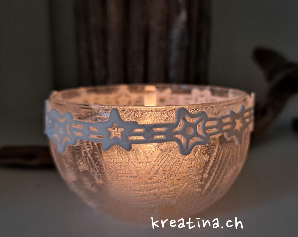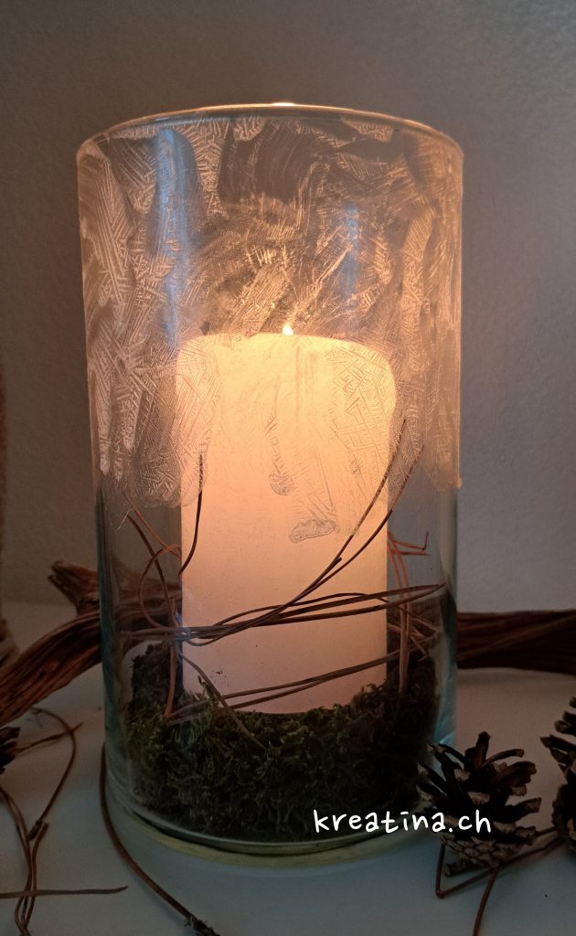 Natürlich kannst du auch kleine Windlichter komplett mit dem EisblumenEffekt gestalten und ihnen so einen wunderschön winterlichen, edlen Look verleihen.