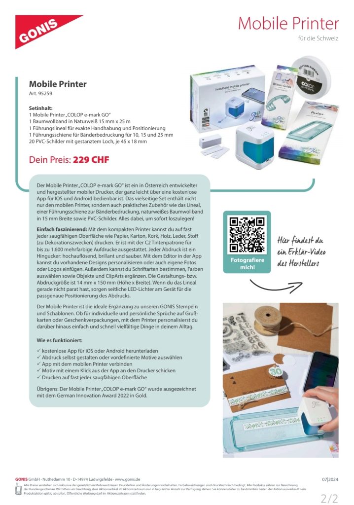 Ich freue mich sehr, euch mitteilen zu können, dass der mobile Drucker wieder bei GONIS erhältlich ist. Ich bin nach wie vor begeistert von ihm und benutze ihn regelmässig. Gerne drucke ich Etiketten für selbstgemachten Sirup, Konfitüre, Feigensenf und vieles mehr. Auch zum Beschriften der GONIS-Kataloge nutze ich ihn. Natürlich ist er auch bei meinen Kindern sehr beliebt, da er kinderleicht zu bedienen ist.