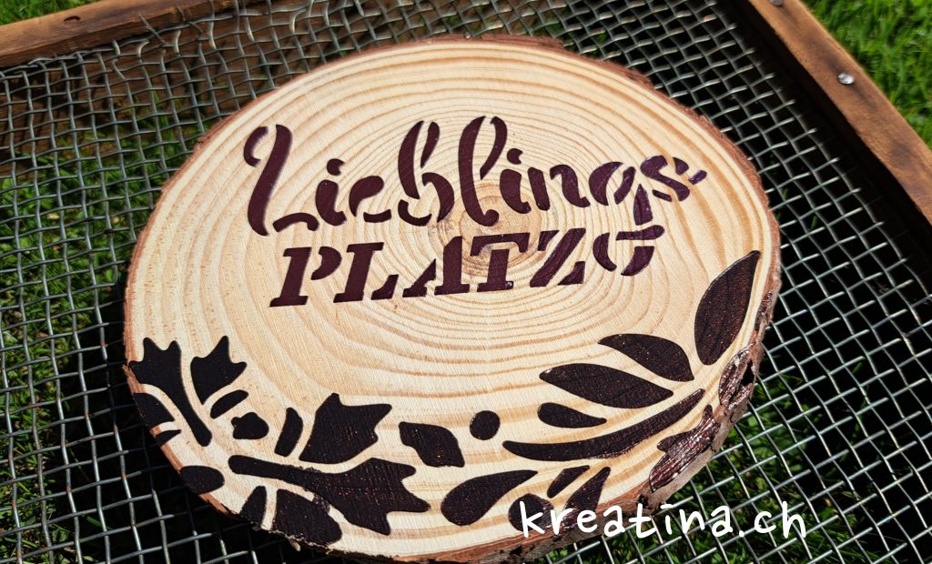 Nach einer Trocknungszeit von 24 Stunden ist die Oberfläche auch für den Aussenbereich geeignet. Da unbehandeltes Holz im Laufe der Zeit durch Witterungseinflüsse schwärzlich werden, versiegle ich es mit dem Finisher, um dies zu verhindern.