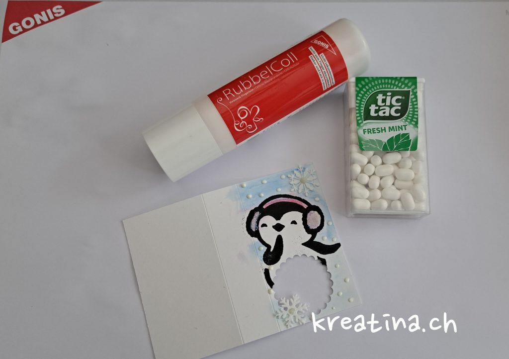 Wenn alles trocken ist, kannst du mit dem RubbelColl die Hülle an das TicTac kleben und fertig ist dein süsses Mitbringsel.